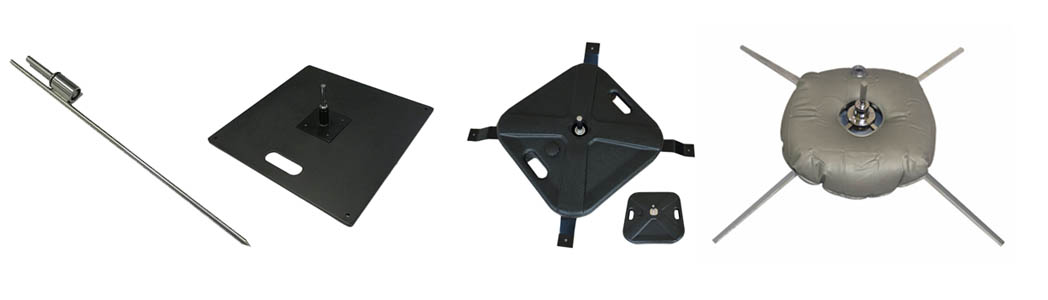 • Cross Base: Versatile for indoor and outdoor use; can include ground nails for stability.