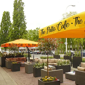Market Patio Umbrellas: Market umbrellas are typically larger and more traditional in style. They are great for businesses that want to create a shaded outdoor space for large groups of customers.