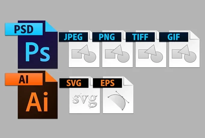 Vector formats (AI, EPS, SVG) are ideal for logos and text, but AI does not generate true vectors