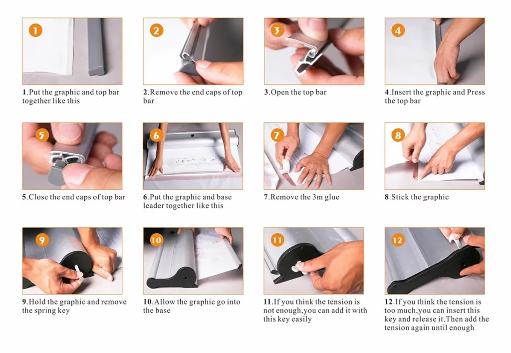 The procedure for replacing the graphic on a retractable banner is a fairly complex and time consuming operation. This is in large part due to the fact that the high tension of the retract mechanism could be dangerous if not handled in the correct manner. Such a dangerous operation should only be attempted by an experienced pro.