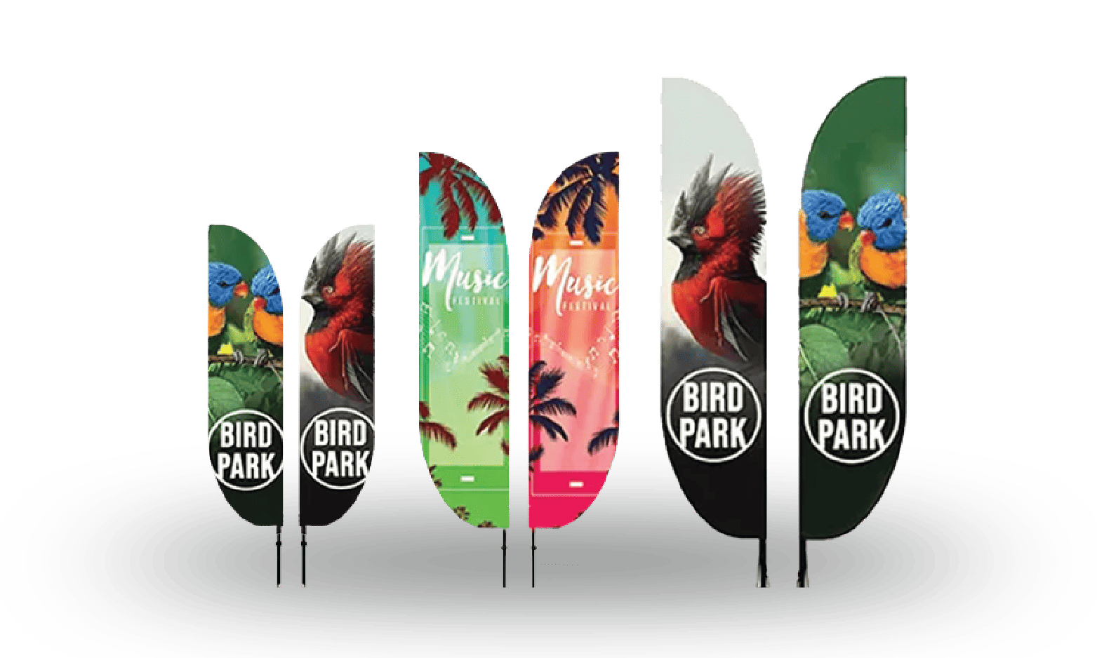 We help brands select the right banner shape, size, and design to ensure every event delivers maximum impact.  Our in-house designers can help you create a layout that works perfectly with the feather flag shape, learn more about our Free Professional Design Services here.
